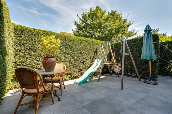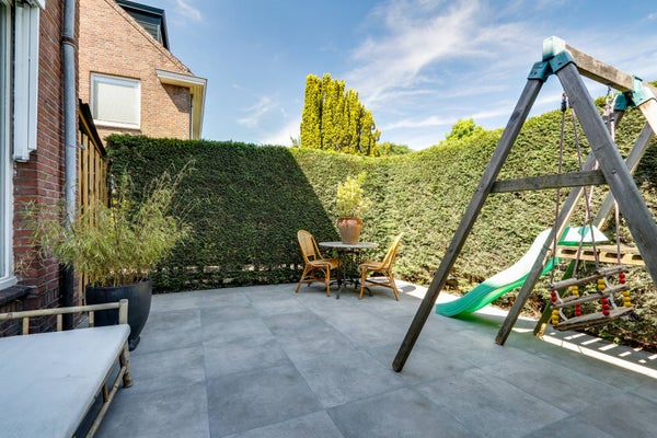 Via de voortuin met heerlijke ochtend zon en kindvriendelijke speeltoestellen heeft u toegang tot de woning.