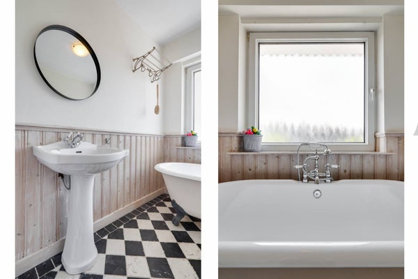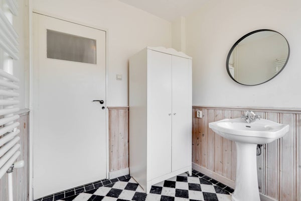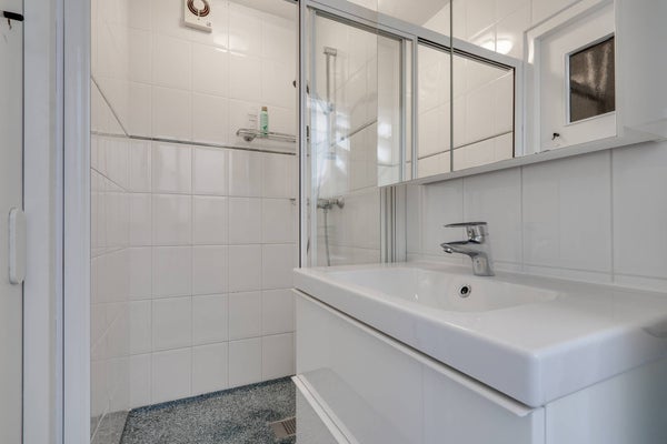 De grote badkamer beschikt over een ligbad en wastafel. De 2e badkamer heeft een inloopdouche en wastafel met wastafelmeubel.