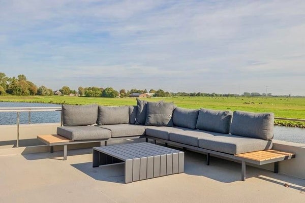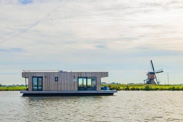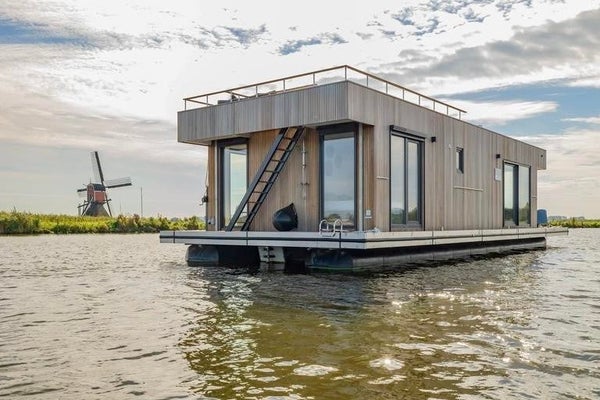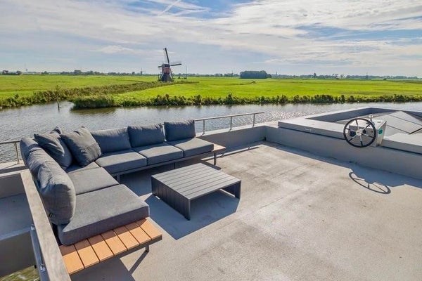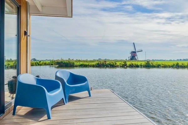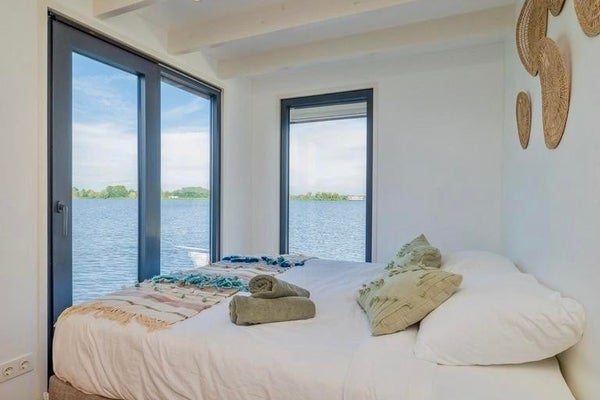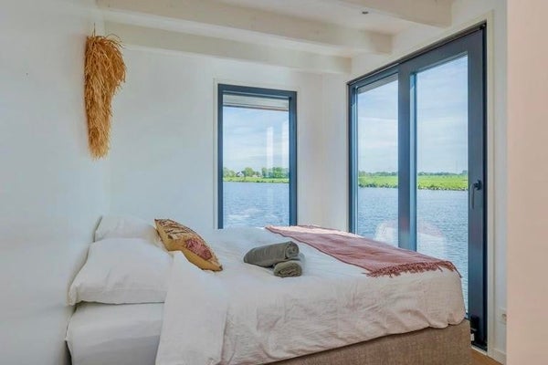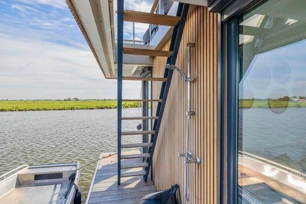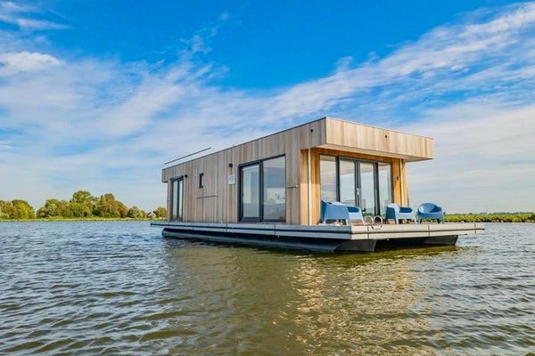 De water villa is aangemeerd op de locatie Tjotterpad, gebouwd in '23 en volledig uitgerust.