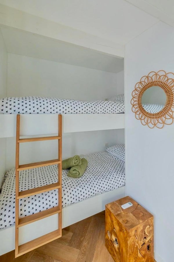 Vanuit de woonkamer/keuken heb je direct toegang tot het voorterras. * Deze specifieke water villa heeft een groot dakt terras. De woning heeft 3 slaapkamers (2 bedden van 1.80 x 2.00m en een stapelbed van 90 x 2.00 meter) en vaste kasten.
