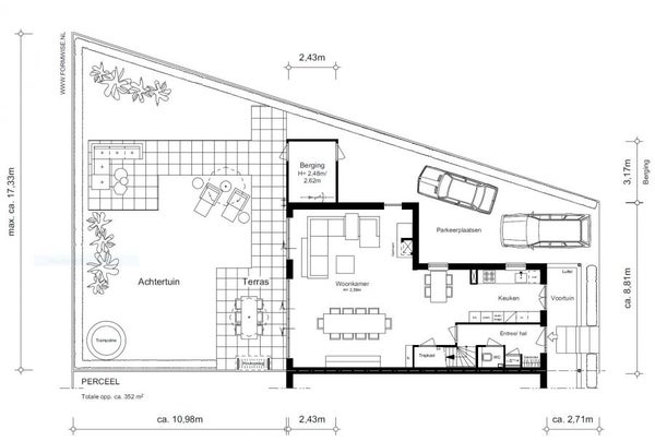 Hoekligging in combinatie met breedte: woning is zeer ruim en licht