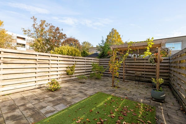 De schuifpui biedt directe toegang tot de zonnige achtertuin van circa 40 m². Een heerlijke plek om te ontspannen, te spelen met kinderen of te genieten van lange zomeravonden.