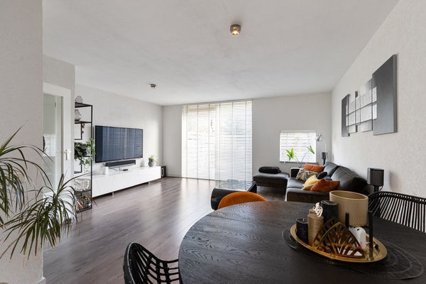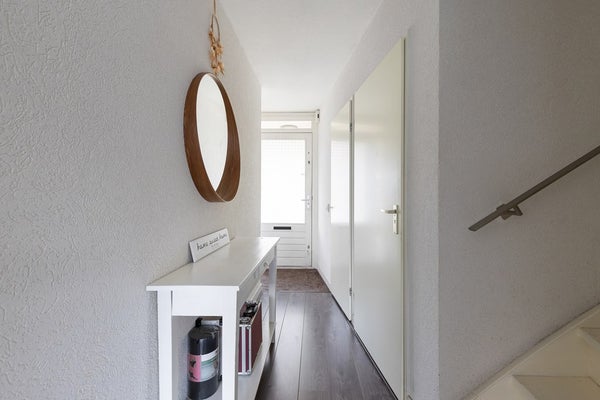 Via de verzorgde voortuin betreedt u de woning. De hal geeft toegang tot de lichte en ruime woonkamer. Dankzij de grote schuifpui aan de achterzijde geniet de woonkamer van veel natuurlijk licht en een prettige verbinding met buiten.