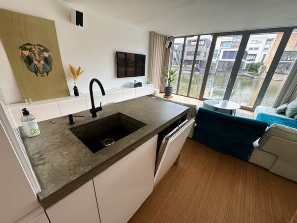 Vanuit de woonkamer heb je prachtig uitzicht over het water en stap je direct op de drijvende vlonder voor een kop koffie in de ochtendzon of een verkwikkende duik in de Polygoongracht. Ook is er ruimte voor het aanleggen van een boot en vaar je zo naar Pampus, Durgerdam, bij Muiden de Vecht op en natuurlijk grachtengordel van Amsterdam!!!