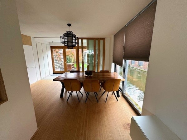 Tijdelijk Wonen aan het water!!! Dit geweldige licht familiehuis (195 m2) met rondom water ligt aan een rustig autoluw straatje, heerlijke tuin én dakterras op het zuidwesten inclusief garage. Boven de garage bevindt zich een zelfstandige studio met keuken en badkamer. Ideaal voor een au-pair, als puber honk of werken aan huis. De woning bestaat uit 2 badkamers, 4 slaapkamers en beschikt over veel bergruimte.