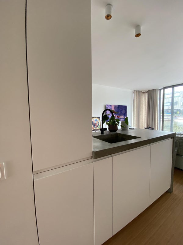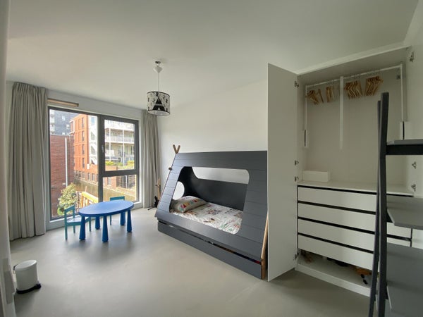 2e verdieping: Op deze verdieping bevindt zich een zeer grote slaapkamer met frans balkon en kitchenette, badkamer v.v. inloopdouche en wastafel, ruime berging en toegang tot het ruime dakterras (20m2) op het zuidwesten. De ligging: De woning is gelegen op het centrale Haveneiland in de ruim opgezette en kindvriendelijke wijk IJburg. Door het vele omliggende water en de bevaarbare grachten heeft IJburg een maritieme inslag met de haven en haar watersportvereniging als middelpunt. De jachthaven is een fijne plek om elkaar te ontmoeten in een van de horecagelegenheden. Nog meer recreatie vindt u op het strand bij voorheen Blijburg waar thans een pop-up restaurant Haas & Popi is gevestigd, het Theo van Goghpark en het Diemerpark. IJburg grenst aan de oevers van het Diemerpark: een natuurgebied ter grootte van het Vondelpark, waar men naar hartenlust kan joggen, skaten of fietsen (mooie fietsroutes naar o.a. Muiden). Het park heeft zelfs een eigen strand en er resideert een voetbal- en hockeyclub. Tennissen kan op het Rieteiland Oost. Door de vele speelplaatsen, scholen en kinderdagverblijven is het een fijne plek voor kinderen om op te groeien. Het Haveneiland beschikt over diverse basisscholen, het IJburg College (VWO, HAVO en VMBO), gezondheids- en kinderopvangcentra. Voor de dagelijkse boodschappen kunt u terecht in het winkelcentrum met haar ambachtelijke vers-winkels, een grote Albert Heijn, HEMA, leuke restaurants en trendy cafés.