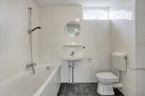 De begane grond heeft een lichte woonkamer, een complete keuken en toilet. Op de eerste verdieping zijn drie slaapkamers en een badkamer met ligbad voor ontspanning, plus een tweede toilet voor gemak. De royale tuin is perfect voor zonnen, barbecueën of ontspannen. Deze woning van 88 m² heeft energielabel A en is beschikbaar voor € 1605,- per maand, met servicekosten van € 5,- per maand.