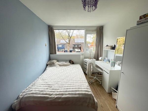 Ruime eengezinswoning met berging, voortuin en zonnige grote aangelegde achtertuin op het westen. Rustig gelegen aan een kindvriendelijk woonerf nabij winkels, scholen en het prachtige Matenpark. Het station is enkele minuten fietsen en de snelweg is enkele minuten autorijden.