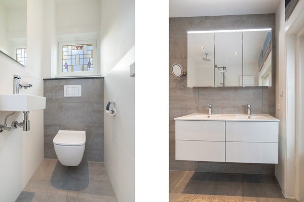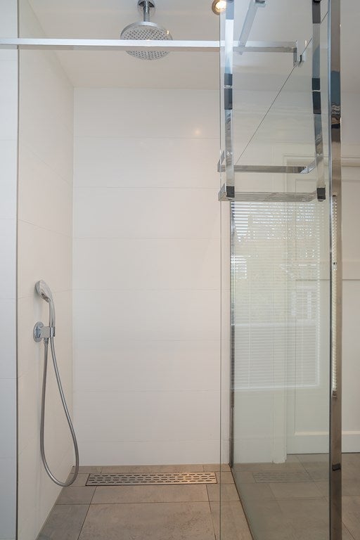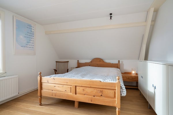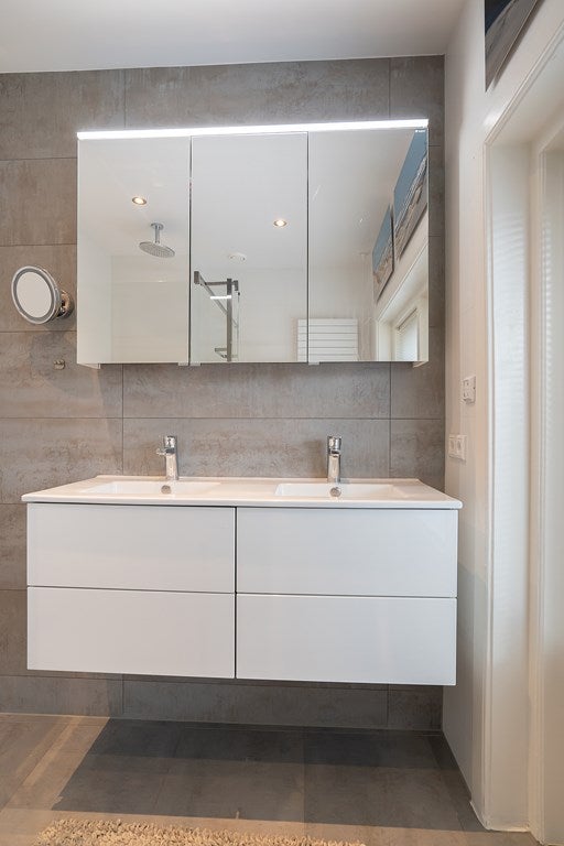 overloop, separaat toilet, moderne badkamer met inloopdouche, dubbele wastafel en vloerverwarming. Naast de badkamer is de Masterbedroom, deze slaapkamer ligt aan de achterzijde van de woning. Aan de voorzijde van de woning ligt de tweede slaapkamer welke momenteel in gebruik is als werk/ studeerkamer.