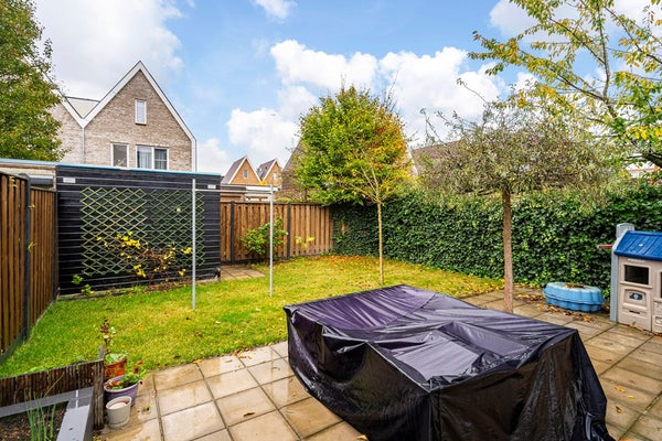 Buitenruimte De woning beschikt over een zeer ruime tuin van bijna 150 m², met een groot terras, vrijstaande houten berging en achterom. De tuin ligt op het noordoosten, maar dankzij de grootte zijn er altijd zonnige én schaduwrijke plekken. Parkeren kan eenvoudig aan de voorzijde van de woning, waar voldoende parkeerplaatsen beschikbaar zijn.
