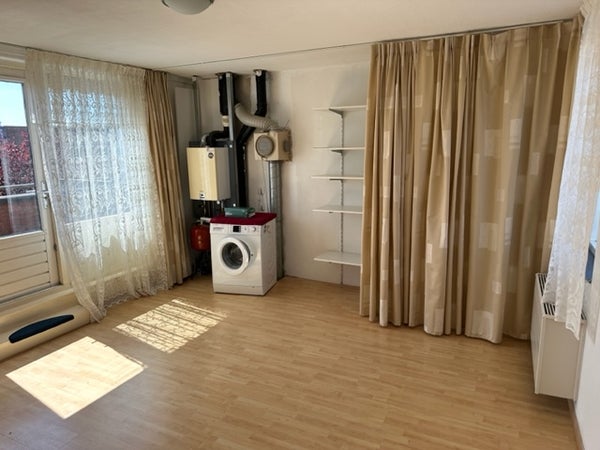 vanaf de vaste trap komt u op de tweede verdieping waar de aansluiting voor de wasmachine zich bevind en een 4e slaapkamer met dakterras.