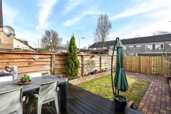 De grote achtertuin, gelegen op het oosten, biedt volop ruimte om van de ochtend- en middagzon te genieten. Dankzij de indeling en ruimte is deze woning uitermate geschikt voor een gezin of een stel.