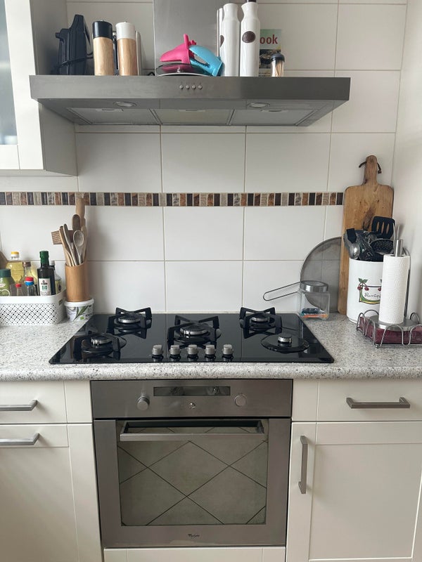 Entreehal, Woonkamer en open keuken. Woonkamer met openslaande deuren naar de achtertuin.