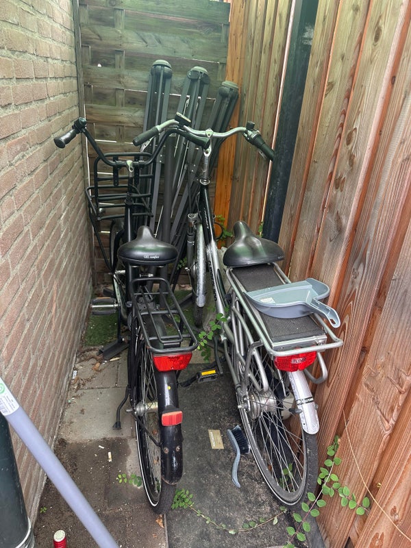 De fietsen zijn in breekleen, alsmede is er een scooter aanwezig.