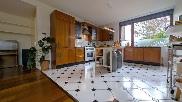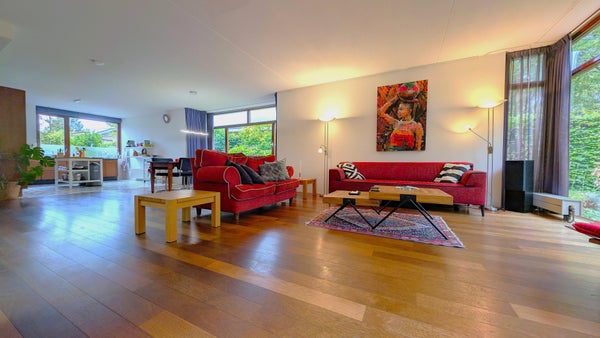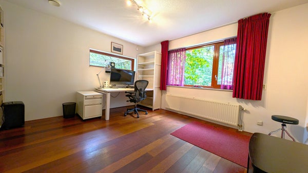 De woning biedt een indrukwekkende hoeveelheid leefruimte met een lichte, royale woonkamer, vijf ruime slaapkamers, een aparte wasruimte en de mogelijkheid voor een kantoor of praktijk aan huis. Dankzij de praktische indeling en de grote raampartijen voelt het geheel licht en open aan.