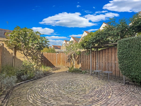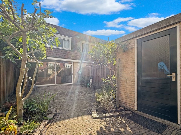 De zonnige tuin ligt gunstig op de zon en beschikt over een praktische schuur voor fietsen en tuinspullen. Een fijne plek om te ontspannen of buiten te eten in de zomer.