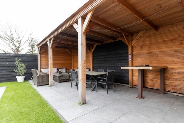 In de tuin bevindt zich een modern recent aangelegd zwembad. Ook is er een overdekking met zitlounge, eettafel, bar en koelkast.