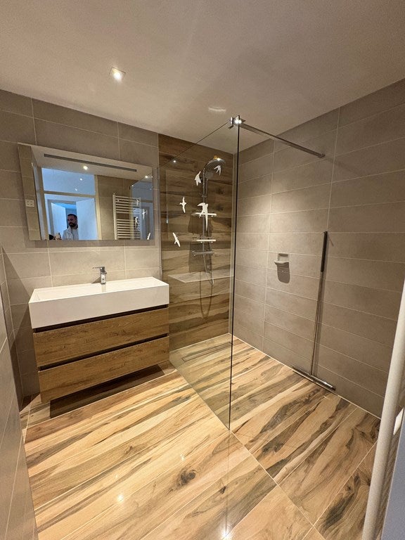 Op de eerste verdieping bevinden zich drie ruime en lichte slaapkamers, perfect voor een (opgroeiend) gezin. Elke kamer is voorzien van grote ramen met ingebouwde jaloezieën en horren die zorgen voor veel daglicht en een prettige sfeer. De badkamer is recent volledig vernieuwd en straalt moderne luxe uit. Voorzien van een inloopdouche, stijlvol wastafelmeubel met lades, inbouwspots, zwevend toilet en hoogwaardige afwerking, biedt deze ruimte alle comfort van nu.