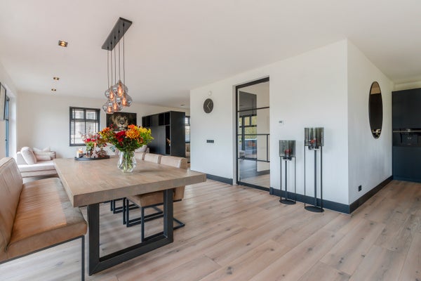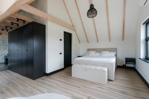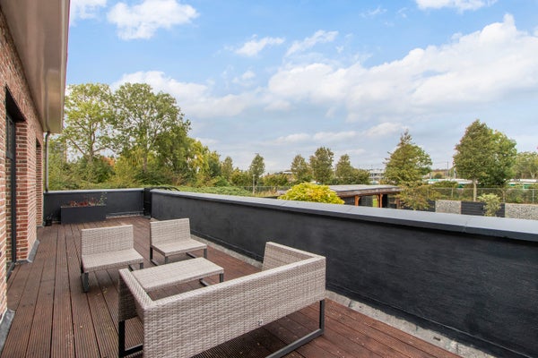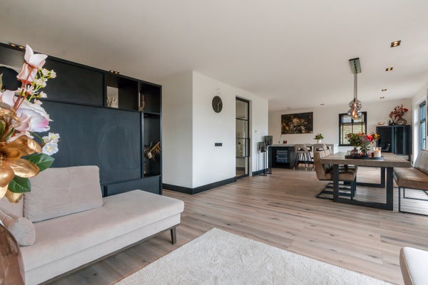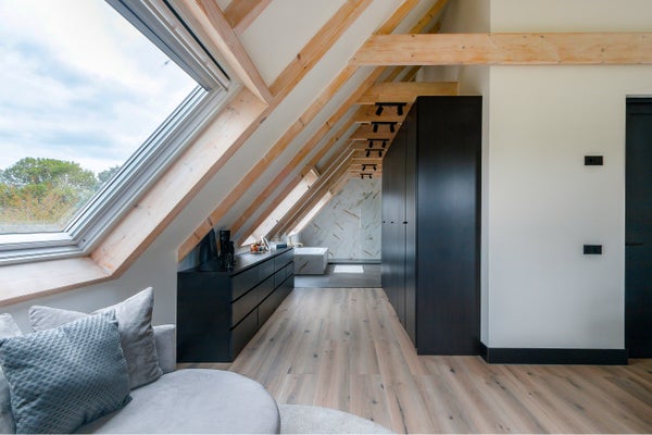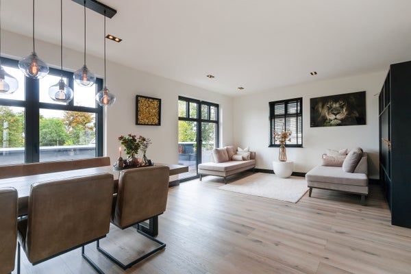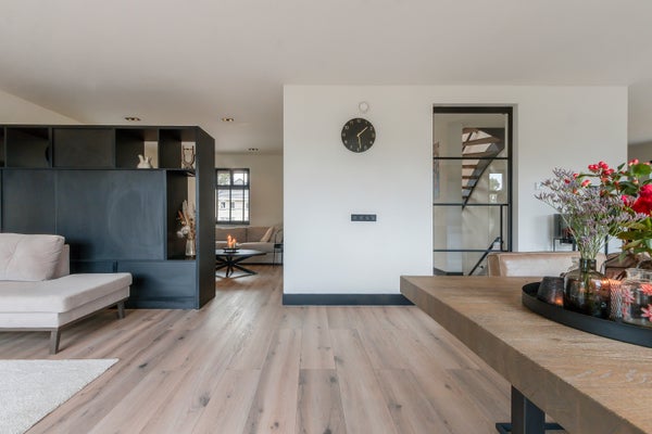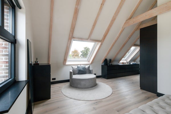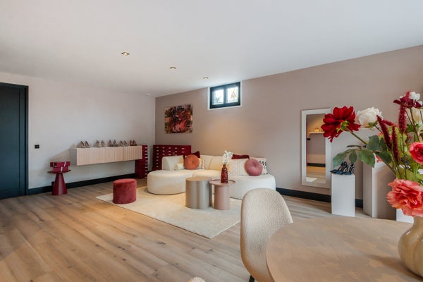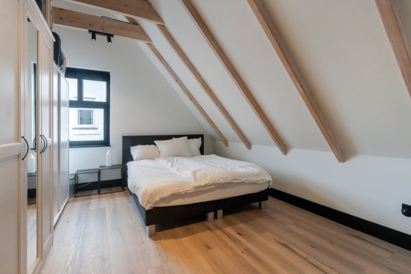 De gehele verdieping is volledig voorzien van een pvc vloer met vloerverwarming en heeft grote raampartijen waardoor de ruimte zo mogelijk nog ruimer voelt.