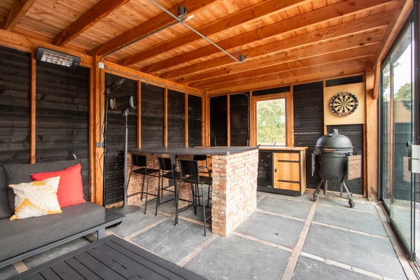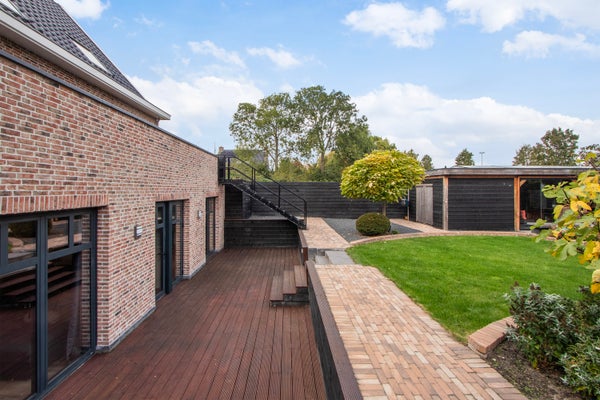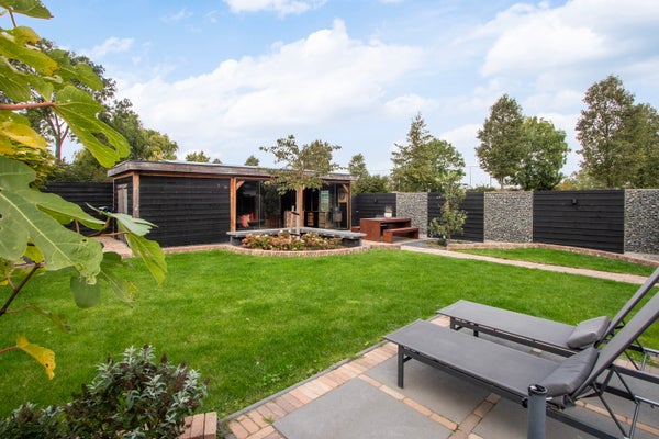 De fraai aangelegde tuin is ruim opgezet, heeft een overkapping met buitenkeuken, lounge gedeelte en berging.