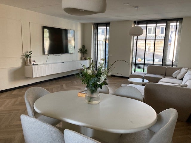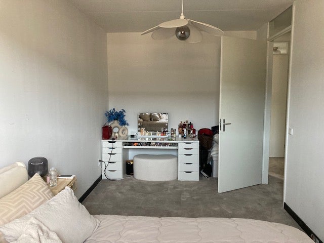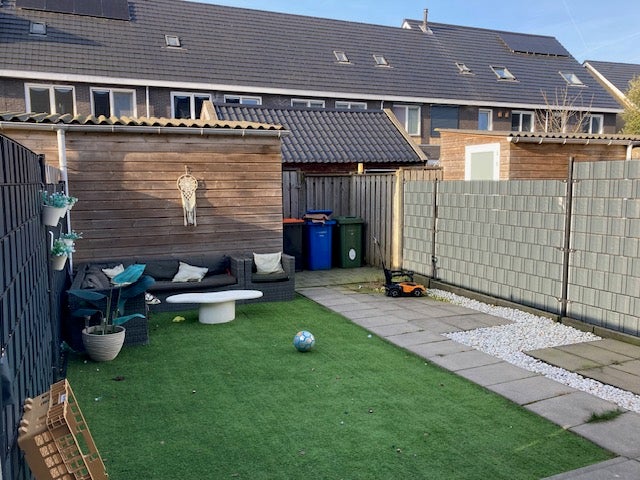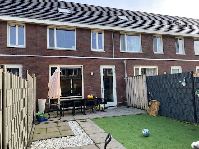 In de rustige woonwijk "Veller" bevindt zich deze uitgebouwde middenwoning met vrijstaande berging, ideaal voor gezinnen. De woning is goed bereikbaar met voorzieningen zoals een supermarkt, scholen en het NS-station Barneveld Zuid in de buurt. De indeling van de woning is als volgt: de begane grond biedt een entree/hal met meterkast, trapopgang en toilet met fonteintje. De royale woonkamer heeft een tuindeur naar het terras en de halfopen keuken is uitgerust met een afzuigkap en gaskookplaat. Op de eerste verdieping zijn er drie slaapkamers en een badkamer met douche, toilet en wastafel. De tweede verdieping is bereikbaar via een vaste trap en herbergt de zolder met aansluitingen voor de wasapparatuur en de C.V.-opstelling. De woonoppervlakte bedraagt 126 m2, met een achtertuin van 50 m2 op het westen. De huurprijs is € 1.975 per maand (excl. gas, water, elektra), beschikbaar per 1 maart 2026. Dit is een eengezinswoning met een goede staat van onderhoud.