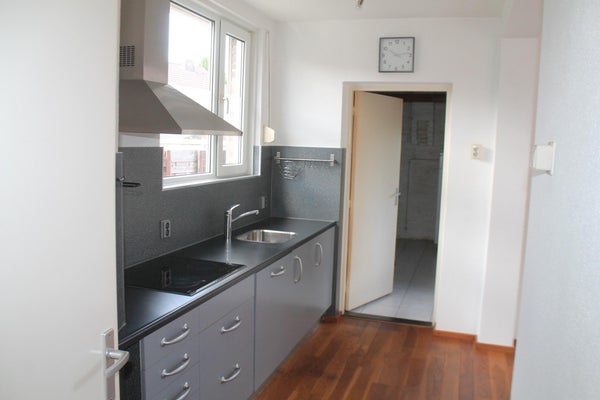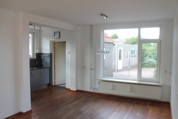Hal/entree (1.10 x 3.50) met toegang tot zowel de woonkamer als de keuken. Toilet met fonteitje. Woonkamer (3.47 x 7.59) met parketvloer en veel lichtinval. Zowel mooi zicht over de straat als over de tuin. Open keuken (1.95 x 2.68) voorzien van nette aanbouwkeuken met parketvloer en apparatuur (koelkast, vaatwasser, inductiekookplaat, afzuigkap). Ruime bijkeuken (3.89 x 2.36) met tegelvloer, wasmachineaansluiting en deur naar tuin.