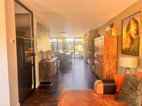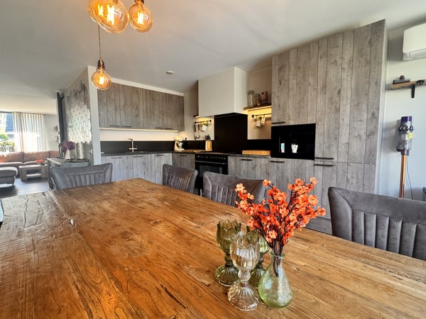 Bij binnenkomst valt de lichte en ruime woonkamer op, met grote ramen die zorgen voor veel daglicht. De open keuken is modern ingericht en compleet uitgerust met hoogwaardige inbouwapparatuur.
