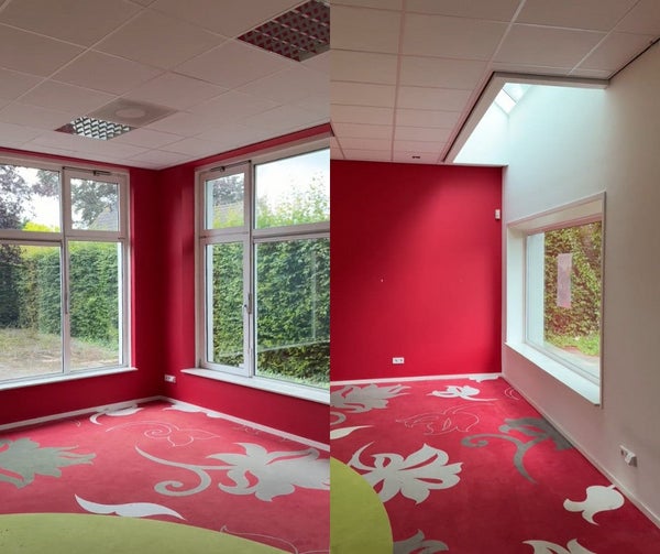 Wat kun je verwachten? Grote open ruimtes, hoge plafonds en volop daglicht dankzij de enorme raampartijen. Om het pand ligt een pleintje, we vragen jullie om dat netjes te houden.