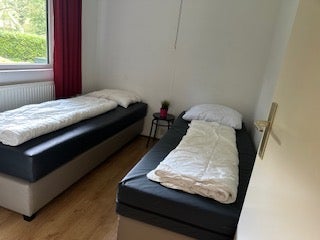 1 Ruime slaapkamer met 2 persoons bed met kasten en 2 kleinere slaapkamers met kastruimte en bedden.