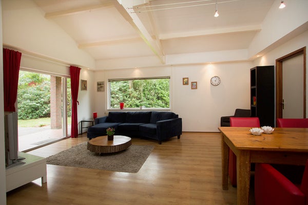 De woning is gelegen op Landgoed Valkenburg. Een kleinschalig vakantiepark in de bossen van Ede en Bennekom, tussen kasteel Hoekelum en natuurgebied De Sysselt. Met de uitgestrekte heidevelden van de Veluwe op fietsafstand en alle stadse voorzieningen in de buurt, is dit een perfecte uitvalsbasis.