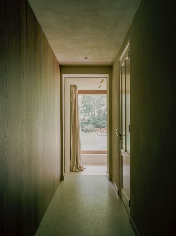 De masterbedroom op de begane grond voelt aan als een luxe hotelkamer, met grote ingebouwde kledingkasten en een eigen badkamer voorzien van douche, wastafel en een privé sauna. Vanuit de douche kijk je heerlijk de groene tuin in — pure wellness in huis.