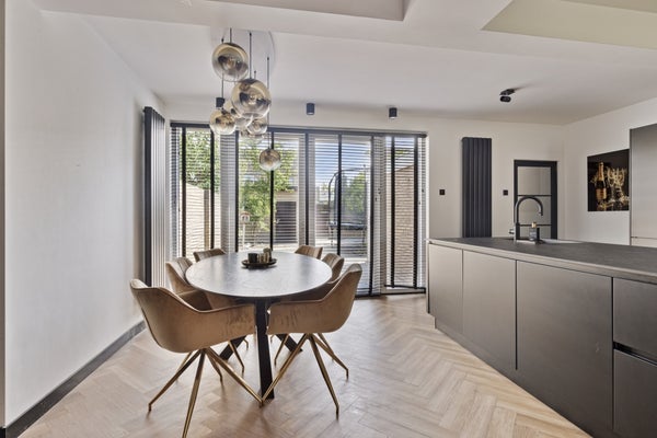 Grenzend aan de keuken vind je het gezellige eetgedeelte, perfect voor lange, sfeervolle diners met familie en vrienden.