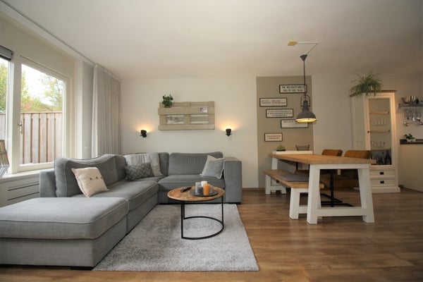 De woonkamer beschikt over een gezellige zit- en eethoek en heeft met open keuken. De nette en moderne keuken is voorzien van een vaatwasser, koel-vriescombinatie, combi-oven en 4-pits gasfornuis met afzuigsysteem.