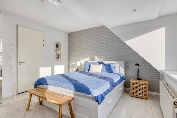 De tweede slaapkamer, gelegen aan de voorzijde, heeft een prettig formaat en is zeer geschikt als kinder-, logeer- of werkkamer. Er is een eenpersoonsbed aanwezig welke uitgetrokken kan worden tot een tweepersoonsbed.