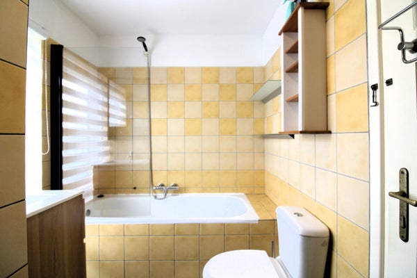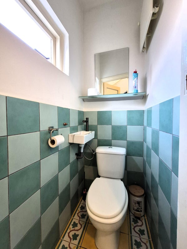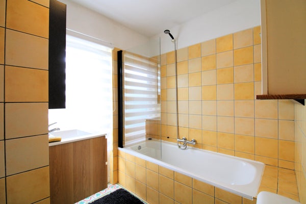 De badkamer voorzien van een douche-bad combinatie, toilet en een wastafel. Ook kunt u vanuit hier het dakterras bereiken.
