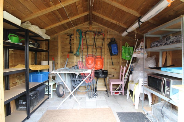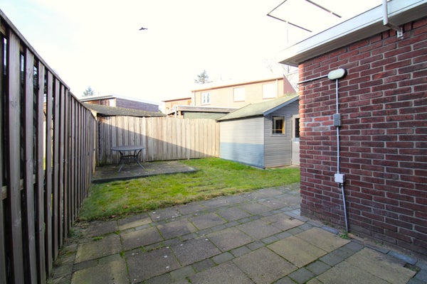 Royale tuin gericht tot het westen, inclusief een achterom. De tuin is privé en beschut gelegen en beschikt over een terras en tuinhuis. Een auto kan geparkeerd worden op de oprit van de woning.