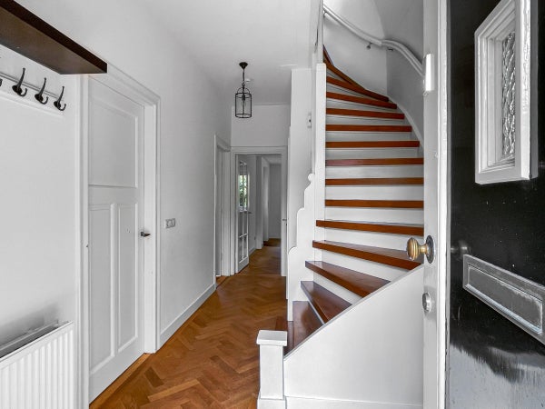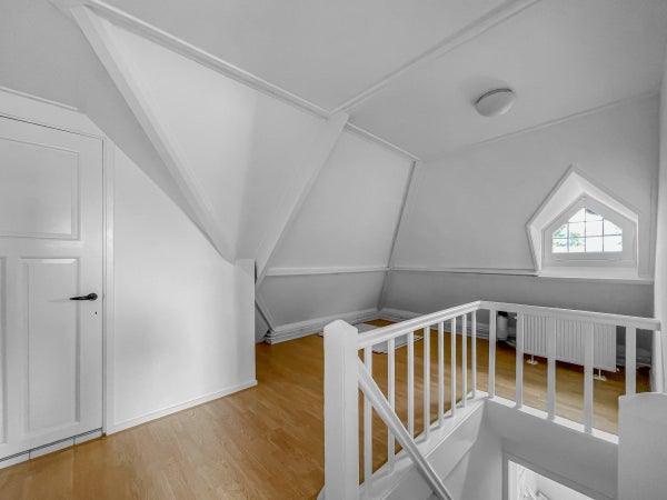 Op de zolderetage (bereikbaar met een vaste trap) tref je naast een ruime overloop de vierde slaapkamer, op deze etage tevens de Cv-ruimte met aansluitingen voor een wasmachine en droger.