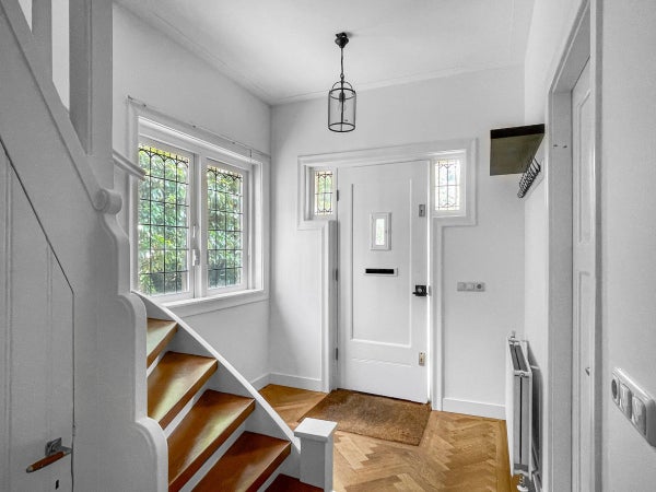 Entree, hal met trapopgang, toilet, toegang tot de kelderruimte. Woon/eetkamer en suite met originele glas in lood, een sfeervolle haard en visgraat parketvloer. Vanuit de eetkamer toegang via de openslaande deuren naar het terras. De uitgebouwde royale eetkeuken biedt meer dan voldoende ruimte voor een grote eettafel, heerlijk koken met gezelschap! De keuken is voorzien van diverse (inbouw) apparatuur zoals een koelkast met vriesvak, vaatwasmachine, 5-pits gaskookplaat met elektrische oven, afzuigkap en een magnetron. Ook vanuit de keuken loop je zo de achtertuin in met voldoende privacy, een stenen berging en een praktische achterom langs de uitgebouwde keuken.