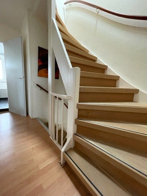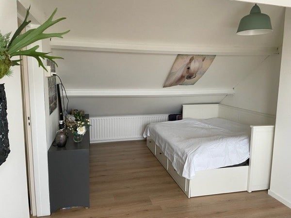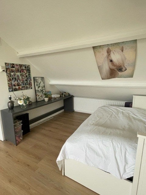 De badkamer is voorzien van een moderne afwerking met een ruime douchecabine, heerlijk ligbad, tweede toilet, dubbele wastafel en spiegelkast. Alles fris wit betegeld met antracietkleurige accenten. De woning beschikt over drie slaapkamers verdeeld over twee verdiepingen. Hierdoor is er ruimte genoeg voor een gezin, een thuiswerkplek of een hobbykamer.