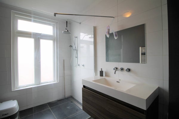- Moderne badkamer van ca. 3,15 x 1,80 m. met een strakke afwerking.
