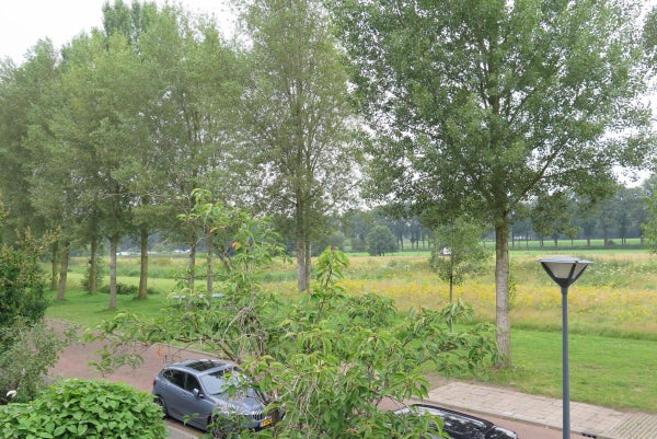 De ruime woonkamer heeft een beide kanten een grote raampartij, waardoor er sprake is van veel natuurlijk lichtinval. Aan de voorkant van de woning heeft u een vrij uitzicht met veel groen en aan de achterkant kijkt u uit op de gezellige achtertuin van de woning.