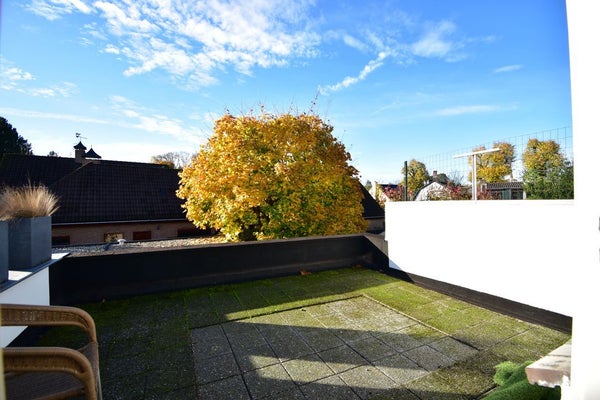Vanuit de woonkamer middels trapopgang toegang tot de tweede verdieping. Hier vindt men twee slaapkamers en een royaal en zeer zonnig dakterras.