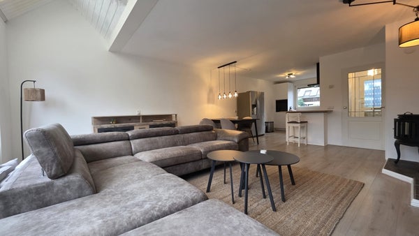 Bij binnenkomst treft u de hal met toegang tot een separaat toilet. De ruime, lichte woonkamer is volledig gemeubileerd en voorzien van onder andere een comfortabele hoekbank, tv-meubel en televisie. De grote raampartijen zorgen voor een frisse, lichte uitstraling.