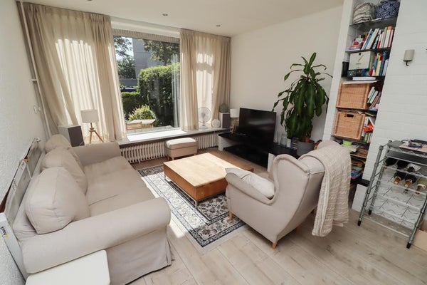 De ruime lichte woonkamer (ca. 30m²) is zeer licht en biedt toegang naar de tuin middels een schuifpui.