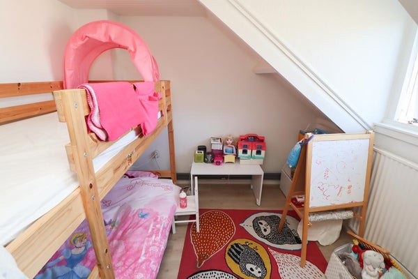 Slaapkamer 5 (ca. 10m²) is gelegen aan de achterzijde van de woning en beschikt over een dakkapel.
