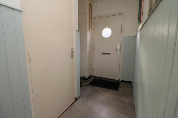 Binnenkomst via de hal/entree met een garderobe nis, de vaste trapopgang naar de eerste verdieping, een trapkast en de aparte toilet.