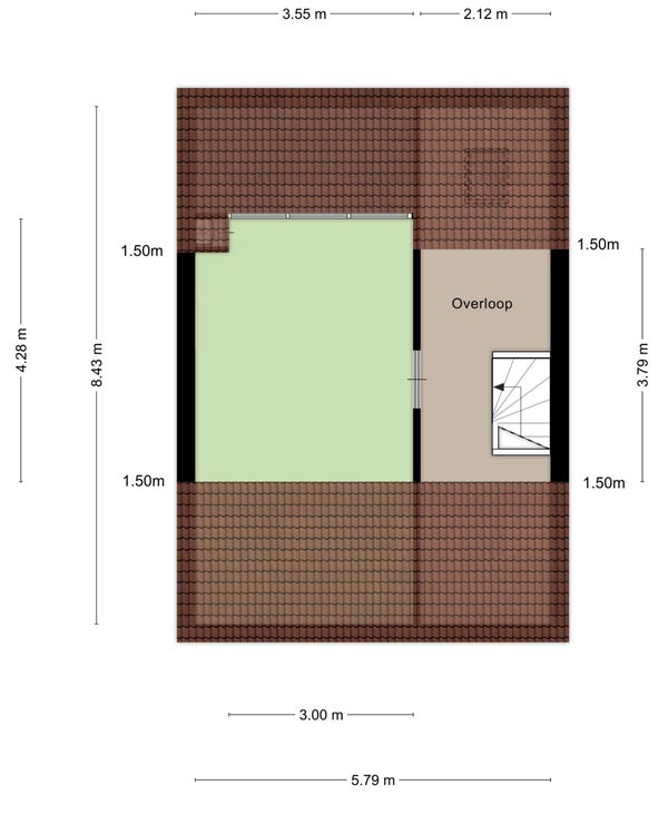 - Aanwezig (90 m², gelegen op het oosten)