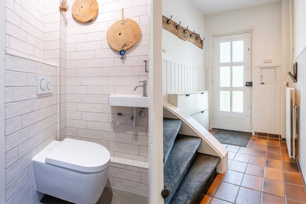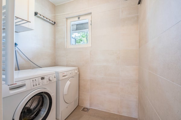 Aan de overloop grenzen de praktische wasruimte met wasmachine en droger, de verrassend badkamer en 2 slaapkamers.