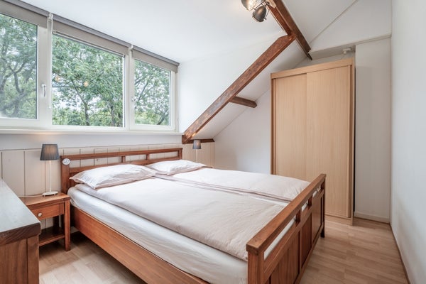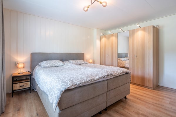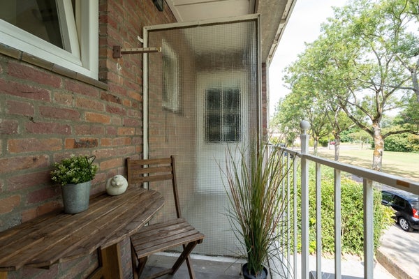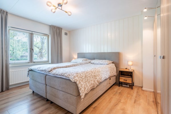 Slaapkamer 1, ligt aan de voorzijde en heeft een loopdeur naar het overdekte balkon en slaapkamer 2 ligt aan de achterzijde.