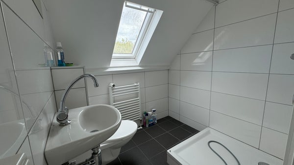 De kamer van ruim 16 m2 bevindt zich op de tweede verdieping van het huis. Je deelt samen met drie andere de keuken, 2 badkamers met aparte douche en wastafel en toilet. Kortom een heerlijke plek om te wonen.